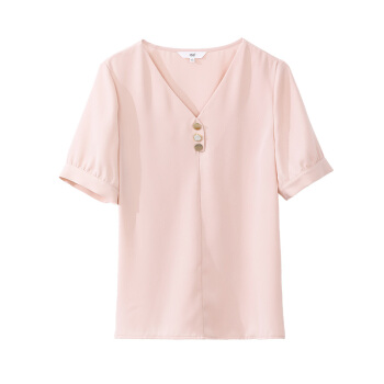 雪纺衫>>OSA欧莎气质短袖雪纺衫女遮肚子2020新款夏季欧洲站洋气小衫时尚上衣 粉色 S