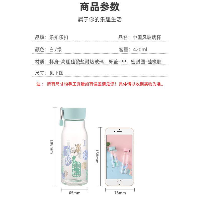420ml创意中国风提绳便携茶杯耐热玻璃水杯【玻璃/颜色自选】