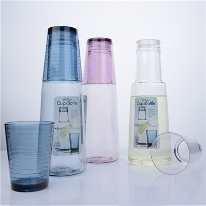 杯/壶>>950ml大容量凉水壶,杯盖可直接当水杯使用,方便快捷,杯口有内盖设计防止大面积洒水【塑料杯/颜色自选】