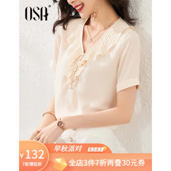 OSA女士短袖雪纺衫夏季2020年新款欧洲站时尚洋气遮肚子小衫上衣 浅杏色 S
