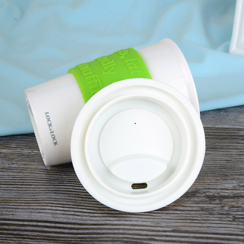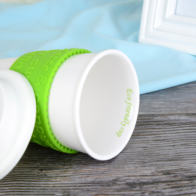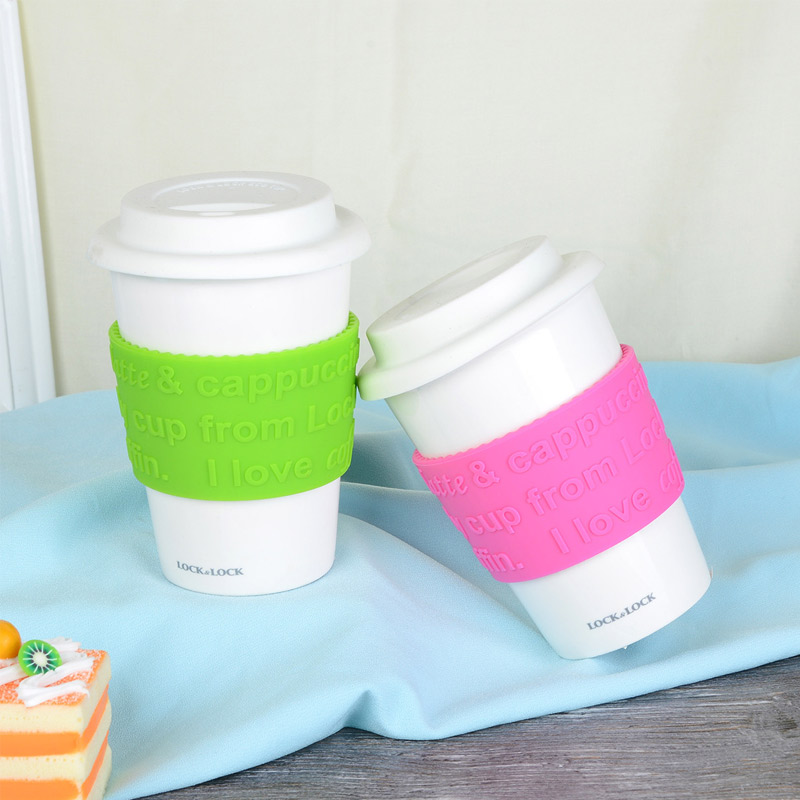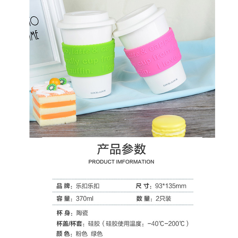 硅胶盖陶瓷水杯马克杯办公咖啡杯【陶瓷/绿色+粉色】