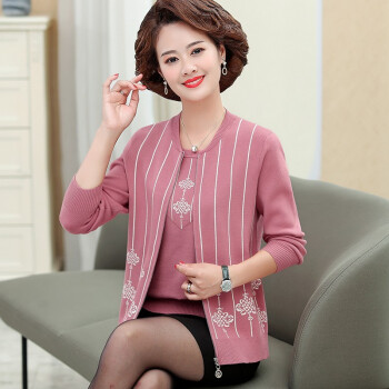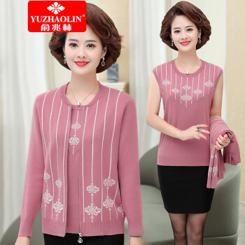 俞兆林中老年人女装妈妈装秋冬装针织拉链长袖外套+t恤两件套装衣服女LY2002 粉色 下单选择正确颜色尺码