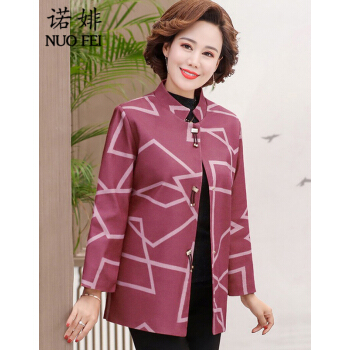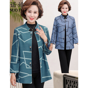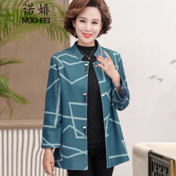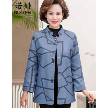 中老年女装>>诺婔新款中年妈妈装春秋装洋气外套高贵上衣中老年女装春装气质大码休闲薄风衣短奶奶大码衣服夹克40岁60 湖蓝色 XL 建议90-115斤