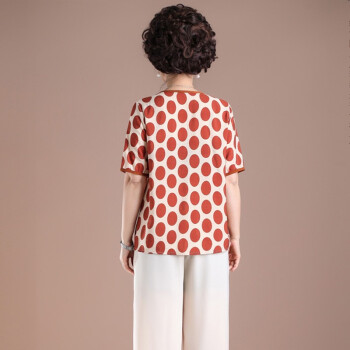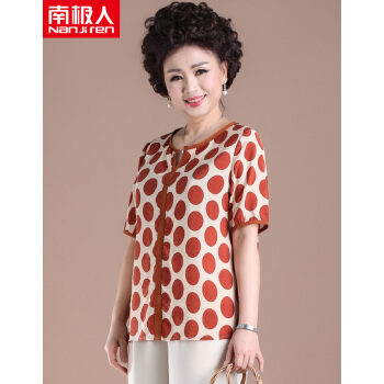 中老年女装>>南极人 中老年女装妈妈装2020夏季新款中年人洋气减龄波点短袖上衣 N3-NRE411-A901-红色圆点(上衣) 2XL(建议116-126斤)