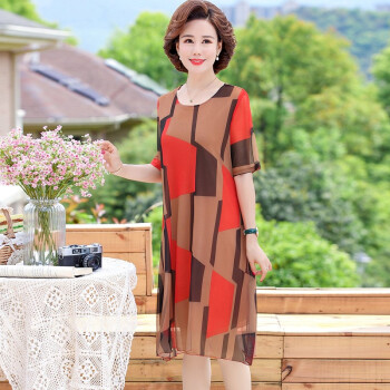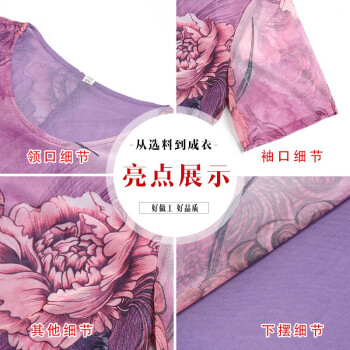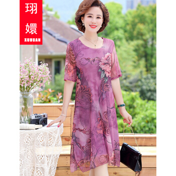中老年女装>>珝嬛中老年女装大码连衣裙女2020夏装新款宽松短袖中年妇女网纱裙大码休闲碎花裙遮肚妈妈装中长款裙子 1号色【紫色】 此码勿拍.请拍自身对应码数