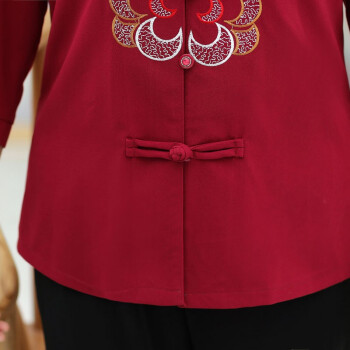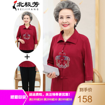 北极芳 中老年女装妈妈装奶奶装2020新款套装春夏装中长袖老年人休闲衬衫女60-80婆婆衬衣 037 红色套装 2XL【105-120斤】