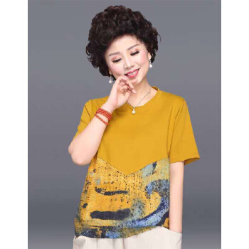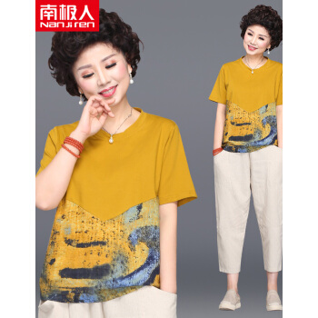 中老年女装>>南极人 中老年女装2020夏季新款妈妈套装女大码洋气短袖T恤中年阔太太两件套 N3-GTBF03-735-套装黄色 4XL