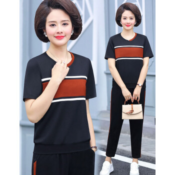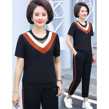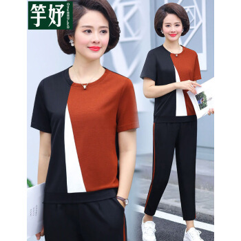 竽妤妈妈装中老年女装2020夏夏装套装短袖t恤女时尚休闲洋气中年女装运动两件套 2号色 请拍对应尺码