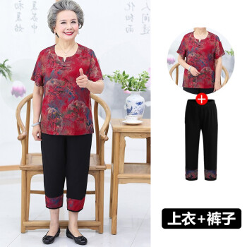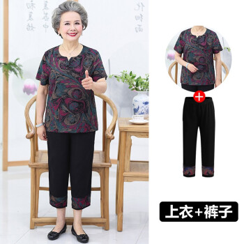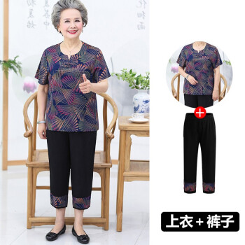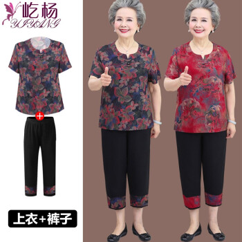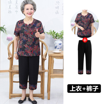 中老年女装>>屹杨套装中老年女装妈妈装大码女装2020新款中老年人夏装女奶奶短袖套装60岁70妈妈T恤上衣老人衣服 1号色 (尺码勿拍,请拍自身对应尺码)