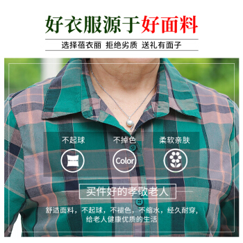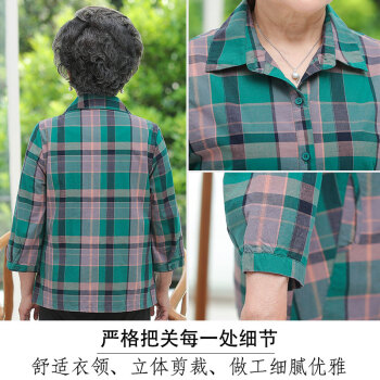 孝珍老年人女装夏装纯棉九分袖衬衫奶奶装格子衬衣套装中老年妈妈装两件套 绿格子+裤子 2XL码(建议体重105-120斤)