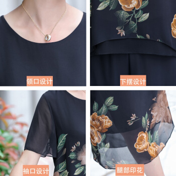 中老年女装>>晳馥香中老年女装妈妈夏装两件套连衣裙女大码新款40岁50中年女装雪纺衫短袖t恤洋气套装 红花 (请拍对应尺码)