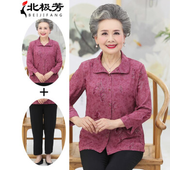 北极芳 中老年女装奶奶装春夏装两件套装翻领衬衫2020老年人夏季印花九分袖衬衣 102-19A-1 红色套装 2XL【105-120斤】
