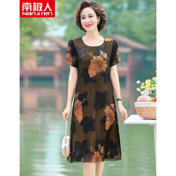 南极人 中老年女装2020夏季新款大码宽松短袖雪纺妈妈装中年连衣裙时尚洋气碎花裙子 N3-NRB03-3008-黄花 3XL【建议120-135斤】 |