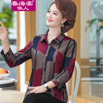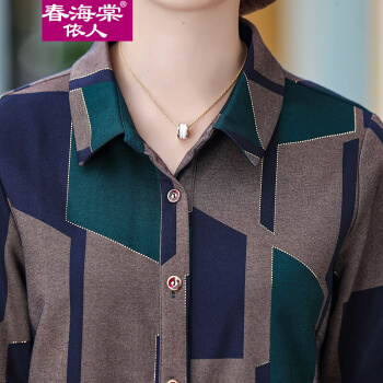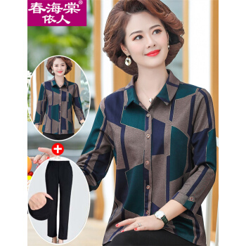春海棠依人中老年女装衬衣休闲百搭外套上衣服春秋新款奶奶装长袖衬衫妈妈装翻领宽松大码开衫套装+休闲长裤 FH2101绿色+裤子 XL【建议85-100斤】 |