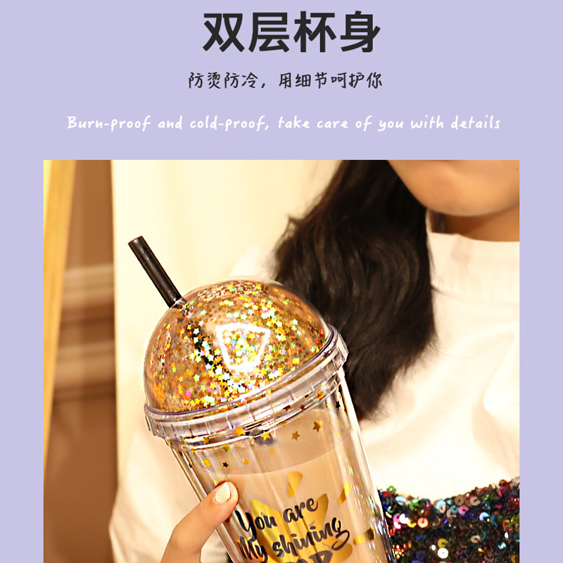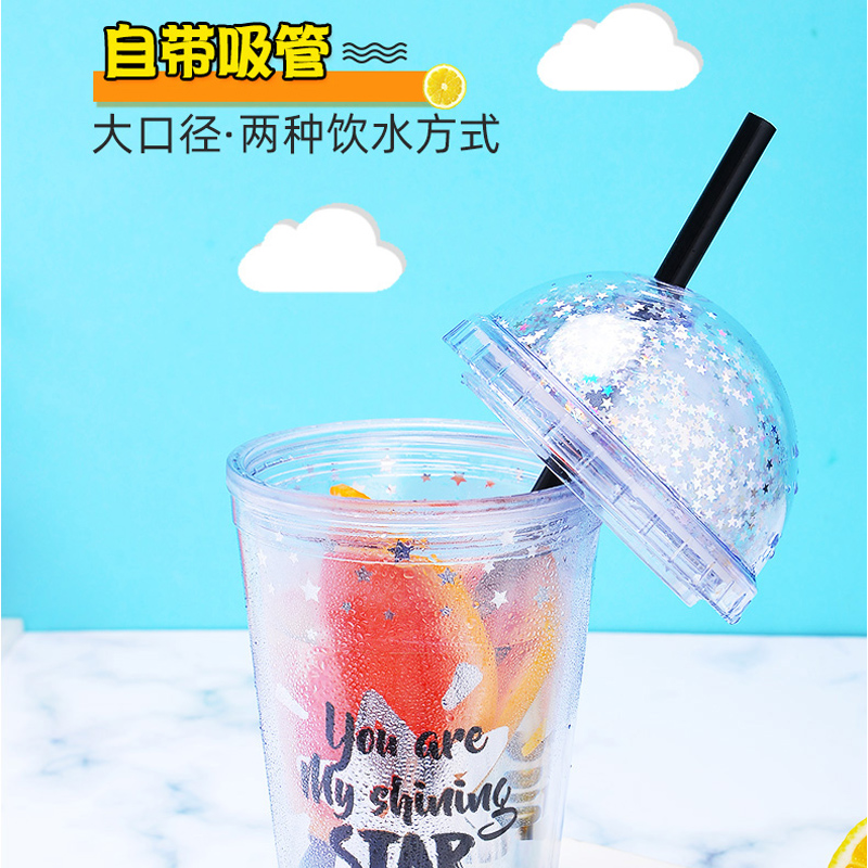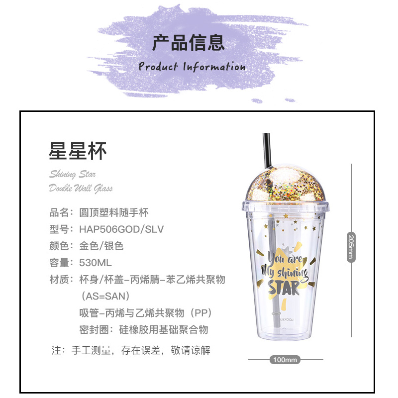 530ml少女心Ins风塑料吸管杯便携随手水杯【塑料杯/颜色随机】