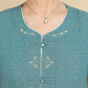 中老年女装>>安贞雪中老年女装奶奶装春秋装透气棉衬衫2020秋季老年人女士刺绣衬衣老太太开衫妈妈装LYFS3426 蓝色两件套装 3XL建议120-140斤