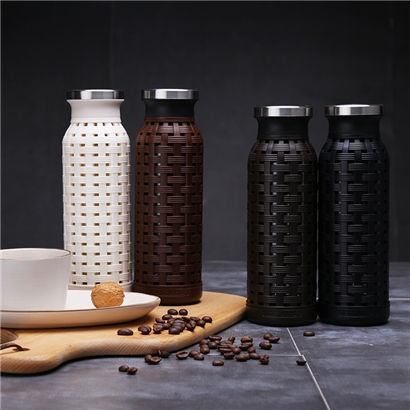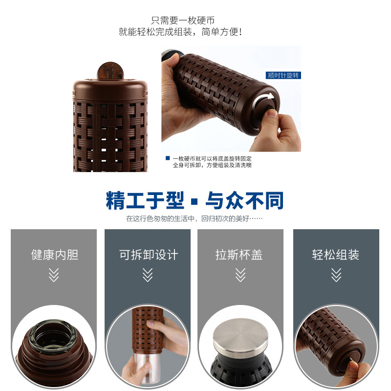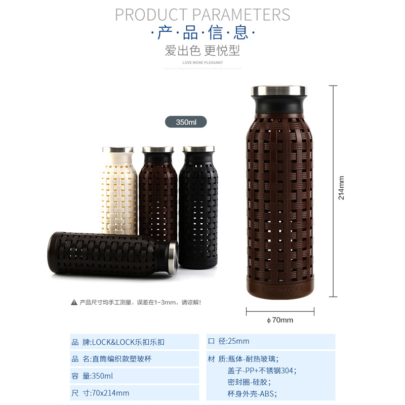 直筒型350ml复古编织塑玻杯耐热玻璃水杯【玻璃/颜色自选】