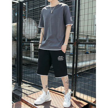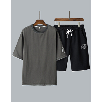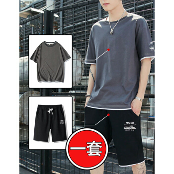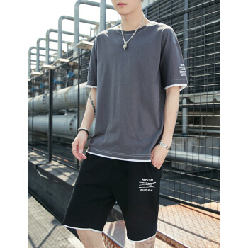 等歌短袖t恤男士t恤短袖夏季薄款圆领潮牌男装丅恤男半袖卫衣运动套装仿棉新款短袖T恤男休闲短裤男两件套 1902深灰 XL