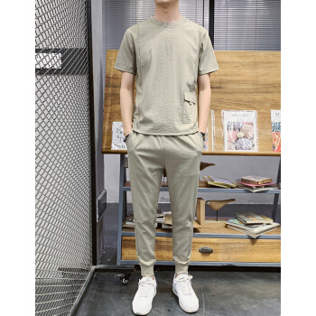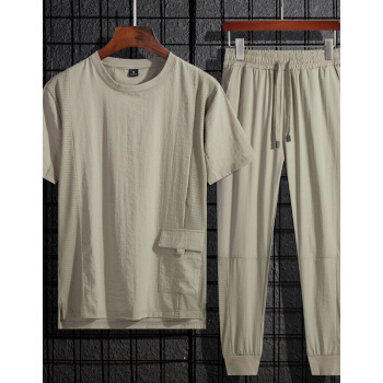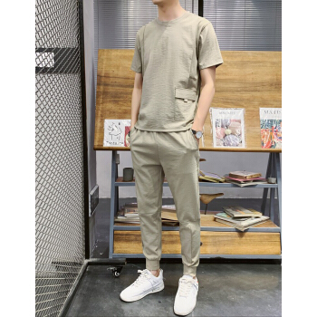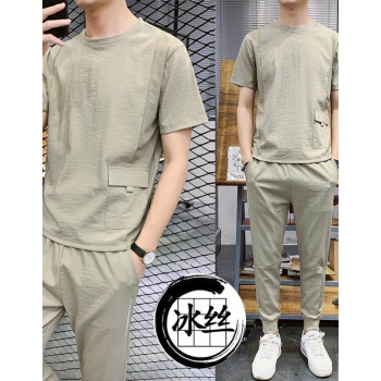 其他衣服>>VACK 夏季韩版短袖套装男韩版衣服男情侣装夏装男装冰丝T恤套装潮牌夏天男士休闲套装男 卡其色 XL
