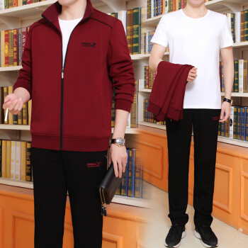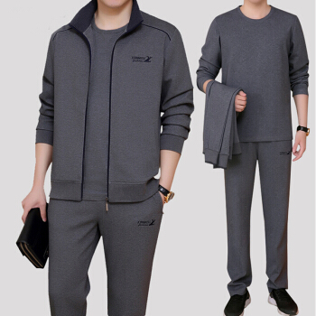 其他衣服>>披星狼 中年男士运动套装男春秋冬季三件套长袖大码宽松休闲卫衣开衫中老年人运动服爸爸装晨练跑步 A款灰色(短袖+外套+裤子). 男款 XL125-145斤