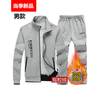 其他衣服>>恒源祥恒源祥商场同款 时尚运动套装男士春秋情侣跑步服冬季中老年加绒卫衣休闲服女秋两件套 灰色男 加绒 S