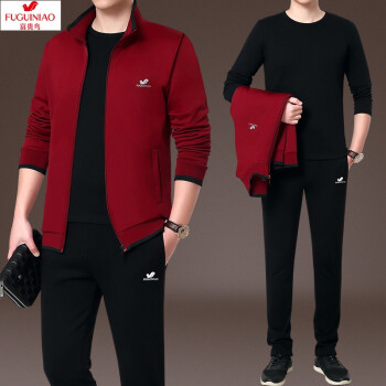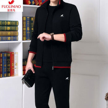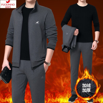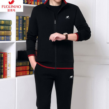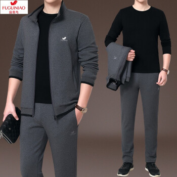 其他衣服>>富贵鸟纯棉运动套装男士运动套装跑步服运动健身服休闲套装男三件套运动套装中老年男装秋冬加绒开衫套装男 春秋款2件套-灰色 M 建议体重95-110斤