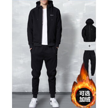 2020春季潮人卫衣男秋季套装男韩版秋装连帽衣服男装整套男士潮流青少年春秋卫衣套装男冬季加绒加厚外 开衫(2件套) XL