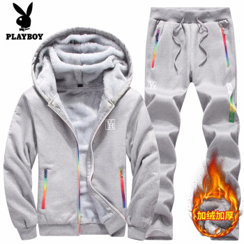 其他衣服>>卫衣套装男春秋冬新款时尚潮牌卫衣男装连帽开衫外套加绒加厚保暖套装跑步运动休闲潮流两件套 8818灰色 3XL(建议155斤以下购买)