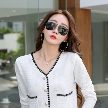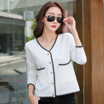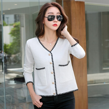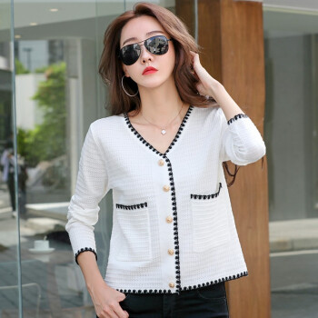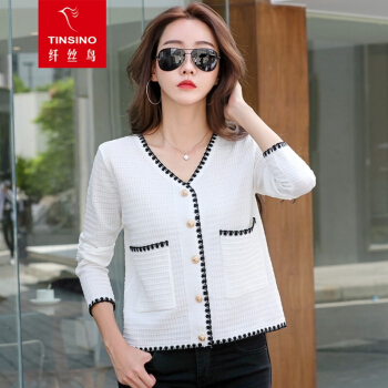 针织衫>>纤丝鸟 TINSINO 针织衫女2020秋季新品小香风撞色针织开衫宽松显瘦毛衣外套女 典雅白 请拍正确尺码