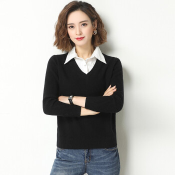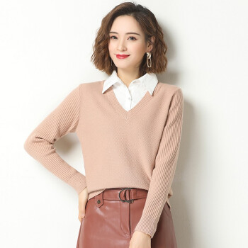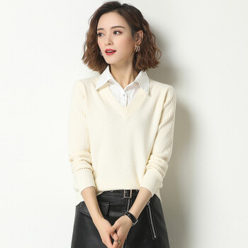 素荨针织衫女套头短款秋装2020年新款衬衫领毛衣女宽松百搭春秋打底衫 黄色15102 M