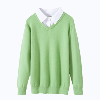 帕兰朵 针织衫女2020秋冬新款假两件毛衣女韩版时尚宽松衬衫领拼接打底衫上衣外套 果绿 请拍正确尺码