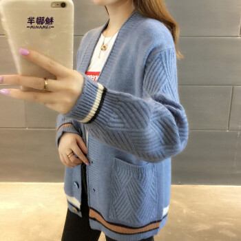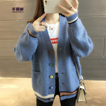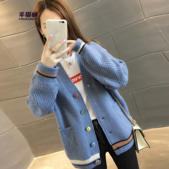 芈娜魅针织衫女开衫2020年秋季新款女装简约慵懒修身长袖针织毛衣上衣女 图片色 请拍正确尺码
