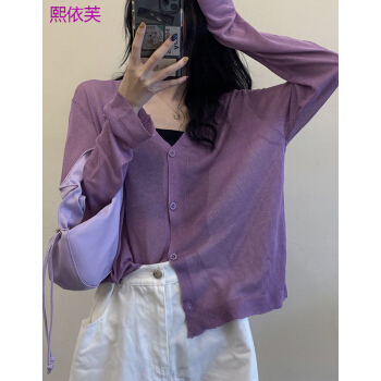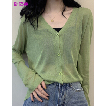 熙依芙针织衫女夏季2020新款小香风v领薄款冰丝bm针织开衫外搭长袖防晒衫上衣女 白色 均码