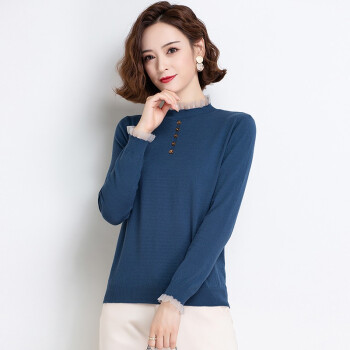 素荨半高领针织衫女秋装2020年新款女装薄款毛衣内搭上衣春秋打底衫 杏色8221 M
