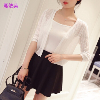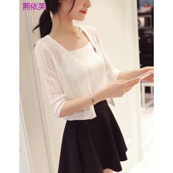 熙依芙针织衫女开衫夏季薄款吊带外搭开衫超仙短款针织衫女镂空冰丝小外套防晒衣披肩 白色 M