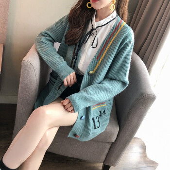 红蜻蜓 毛衣外套女2020春秋新款韩版宽松显瘦慵懒风外搭洋气针织衫开衫百搭休闲上衣潮 WL727 绿色 均码 |