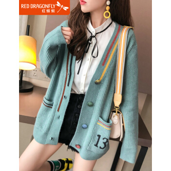 针织衫>>红蜻蜓 毛衣外套女2020春秋新款韩版宽松显瘦慵懒风外搭洋气针织衫开衫百搭休闲上衣潮 WL727 绿色 均码