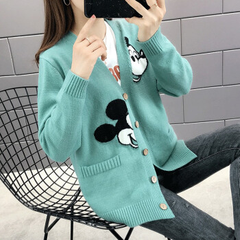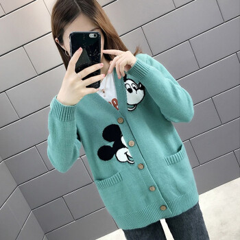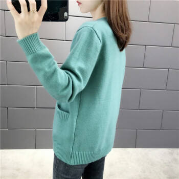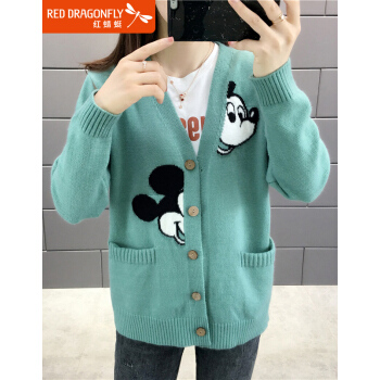 红蜻蜓 针织衫女2020新款秋冬季甜美气质韩版女装开衫V字领宽松型针织毛衣女外套 WL172 绿色 均码