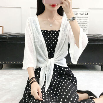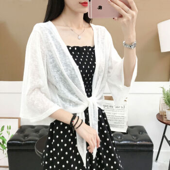 夏季新款小披肩女外搭大码薄针织衫开衫防晒衣短款外套上衣空调衫 白色 M【建议80-120斤】
