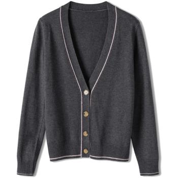 歌米拉 针织衫女开衫春秋短款上衣秋装2020年新款洋气外搭薄款女士毛衣小外套 灰燕麦 M