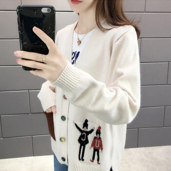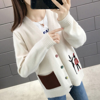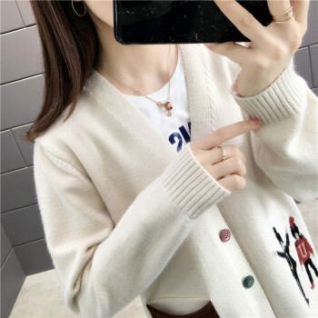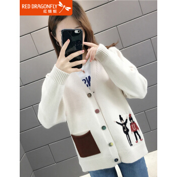 红蜻蜓 慵懒风毛衣开衫女2020秋季新款时尚女装韩版针织外套女上衣潮百搭宽松针织衫 WL733 米白色 均码