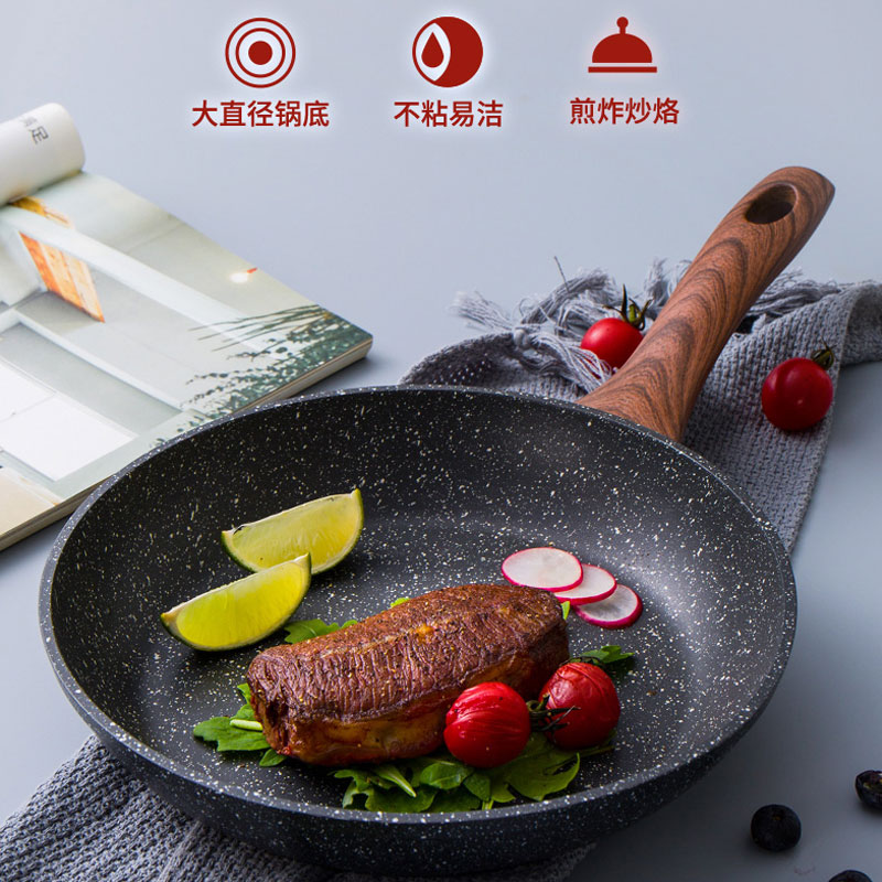 麦饭石色单柄不粘煎锅磁炉适用平底锅 20cm【铝合金/黑色】