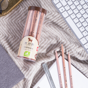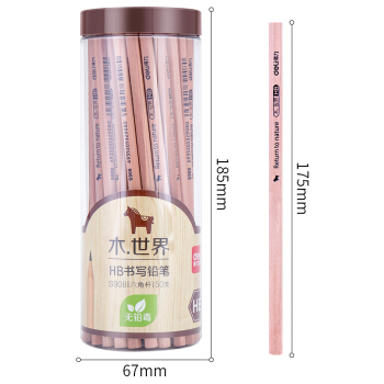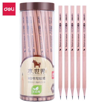 得力(deli)木世界系列六角笔杆原木HB铅笔素描绘图学生铅笔 50支/桶S908
