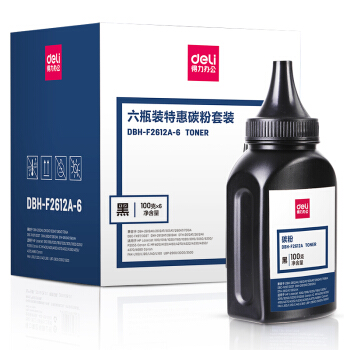 硒鼓/粉盒>>得力(deli)6瓶装DBH-F2612A6 硒鼓 2612搭配碳粉/墨粉1020plus(适用惠普3050/M1005//1010/1012/1015/M1319f