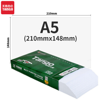 复印纸>>天章(TANGO)新绿天章70gA5(14.8cm*21cm)复印纸 中高品质款打印纸 单包装 500张