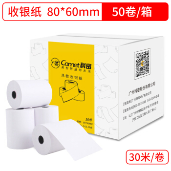 复印纸>>科密 热敏小票纸 80x60mm 美团外卖小票打印纸 超市餐饮收银机收银纸 30米/卷 50卷/箱 A8650