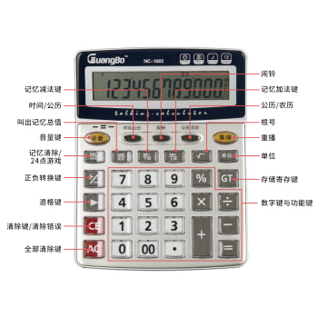 广博(GuangBo) 语音型计算器大号12位日期闹钟计算机 单个装NC-1683