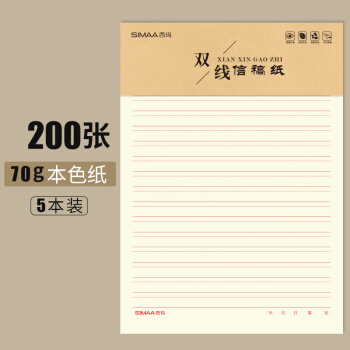 西玛(SIMAA) 40张/5本装16K双线信纸 草稿纸作业本申请书信笺纸8522