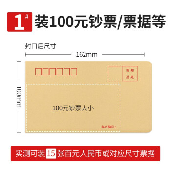 100个/包标准牛皮纸信封信纸邮局信工资袋增值税发票专用信封袋 黄色白色多规格多功能 黄色1号162*100mm(100个)