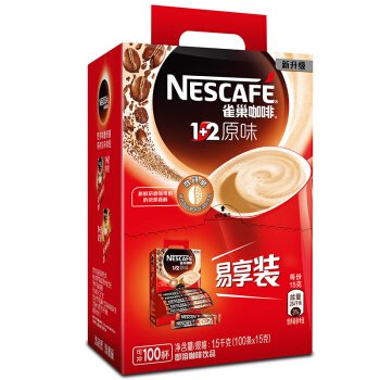 雀巢(Nestle)咖啡 速溶 1+2 原味 微研磨 冲调饮品 100条1500g(新老包装交替发货)